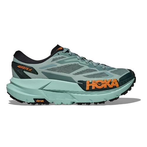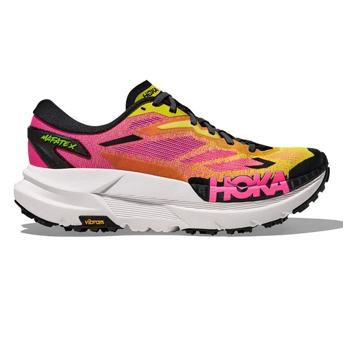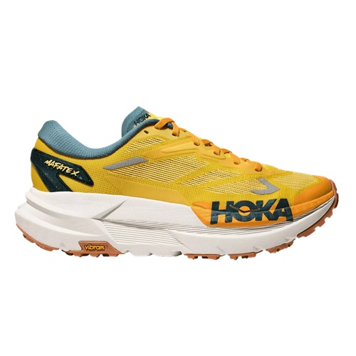 Built for long-haul trail days when comfort and efficiency matter most, the Hoka Mafate X brings super-shoe energy to ultra-ready protection. A premium dual-density midsole pairs a lively PEBA layer with a supportive supercritical EVA carrier, creating a smooth, resilient ride that stays composed when fatigue sets in. Underfoot, a forked carbon-fiber plate adds subtle propulsion and helps steady your stride across rolling singletrack, gravel, and fireroads. An ultralight woven upper drains quickly, while Vibram Megagrip traction keeps you confident as terrain and conditions change.