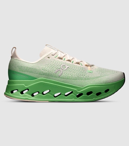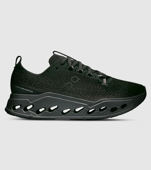 The On Cloudsurfer Max is On’s most cushioned Surfer-series daily trainer, built to make long road miles feel effortless. A high-stack platform pairs Helion superfoam with a double layer of CloudTec Phase pods that compress in sequence, smoothing landings and rolling you forward with a natural rocker. Without a Speedboard, the transition feels quieter and more fluid. A breathable engineered mesh upper with a reworked eyestay and plush tongue keeps the fit secure for easy runs, recovery days, and steady long efforts.