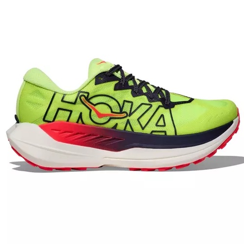 The Hoka Rocket X is designed to deliver top-notch performance for runners seeking a balance of speed and comfort. Ideal for fast training sessions and races, this shoe features a carbon fiber plate that maximizes efficiency and propels you forward with every stride. Its lightweight construction ensures that you won't feel weighed down, allowing you to maintain a rapid pace over various distances. The breathable mesh upper provides a comfortable fit, while the minimalistic design ensures stability and support without added bulk.