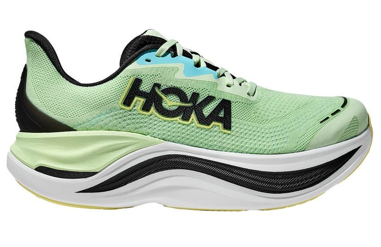 The Hoka Skyward X is designed for runners seeking a blend of comfort, stability, and performance. Its high stack height, combined with a PEBA foam layer and a convex carbon fiber plate, offers a plush and responsive ride, ideal for easy runs and recovery sessions. The shoe's wide base and rocker geometry ensure smooth transitions and stability, making it a versatile option for various training needs. The breathable, flat-knit upper provides a secure fit, while the rubber outsole delivers reliable traction on diverse surfaces.