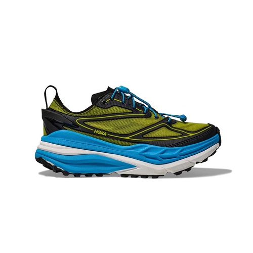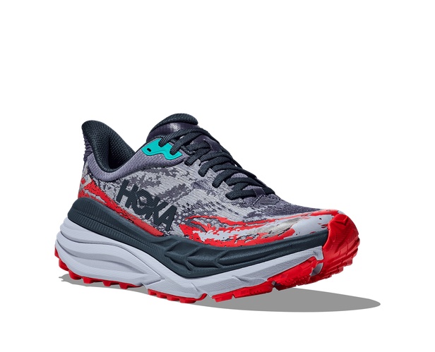 The Hoka Stinson 7 is a versatile trail running shoe designed to provide maximum cushioning and stability for long-distance runs on various terrains. This shoe features Hoka's new H-Frame technology, which offers a balanced, stable platform by incorporating a firmer foam wedge across the midsole. This innovation ensures that even with the high stack height, the shoe remains stable and prevents ankle rolling. The engineered mesh upper provides breathability and a snug fit, enhancing overall comfort and reducing the risk of irritation.