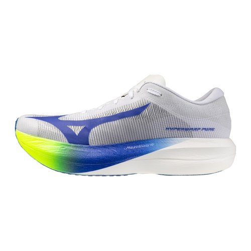 The Mizuno Hyperwarp Elite is a race-day super shoe built to help you hold fast paces without feeling perched on an unstable platform. A dual-layer MIZUNO ENERZY XP midsole blends a softer, lively top layer with a more supportive base, giving you a cushioned landing and a controlled, responsive rebound as the miles add up. A full-length, 3D-shaped SMOOTH SPEED PLATE adds stiffness and snap for efficient turnover, while the breathable monofilament woven upper and grippy G3 outsole keep the fit secure and the ride confident when you’re pushing for a PR.