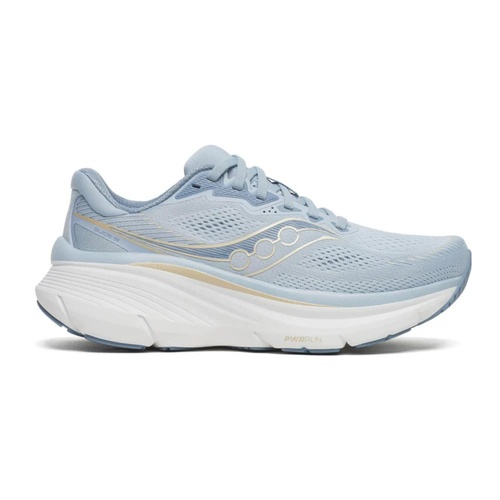 The Saucony Guide 19 is a max-cushioned stability trainer built for runners who want a steady, protected feel on everyday miles. Its PWRRUN midsole leans soft and forgiving, while Saucony’s CenterPath design keeps the ride guided and balanced without resorting to a stiff, old-school medial post. The result is a smooth, confidence-inspiring shoe for easy runs, long walks, and recovery days, with an accommodating upper and a durable outsole that’s ready for the daily grind.