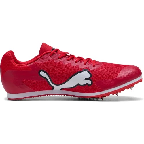 The PUMA evoSPEED Star 9 is a do-it-all, entry-level track spike built for athletes who want one pair that can cover a full meet schedule. It blends a forgiving, cushioned feel with the bite you need to accelerate and stay composed through corners, hurdles, and takeoffs. Underfoot, an extended PEBAX plate and a versatile 6-pin layout help you feel quick and connected to the track, while EVA cushioning keeps things comfortable when your event list stretches from sprints to longer races.