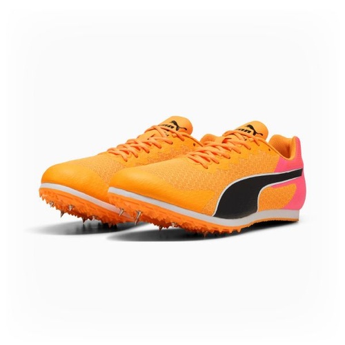 The PUMA evoSPEED Star 9 is a do-it-all, entry-level track spike built for athletes who want one pair that can cover a full meet schedule. It blends a forgiving, cushioned feel with the bite you need to accelerate and stay composed through corners, hurdles, and takeoffs. Underfoot, an extended PEBAX plate and a versatile 6-pin layout help you feel quick and connected to the track, while EVA cushioning keeps things comfortable when your event list stretches from sprints to longer races.