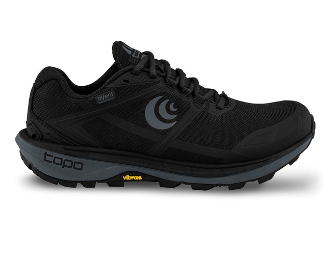 The Topo Terraventure 4 Waterproof is a rugged, nimble trail runner built for the days when the forecast won’t cooperate. A full waterproof eVent bootie helps seal out rain, slush, and puddle splashes, while the shoe’s moderately cushioned, low-profile platform keeps you feeling connected to the ground on technical terrain. Underfoot, the ride balances protection and flexibility, making it equally at home on wet trail runs and fast hikes. Topo’s signature anatomical fit rounds it out with a roomy toe box and a secure, confident hold through the midfoot and heel.