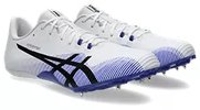 The Asics Hypersprint 8 is designed for short-distance sprinters aiming for peak performance. This shoe features a minimalist design that focuses on reducing weight and drag, allowing for maximum speed on the track. It includes a resin plate that enhances propulsion and grip, ensuring stability and efficiency during high-velocity sprints. The breathable, seamless upper provides a snug fit, while the EVA sockliner offers added support and flexibility. Ideal for sprints and hurdles, the Hypersprint 8 is built to help athletes achieve their best times and maintain comfort throughout their races.