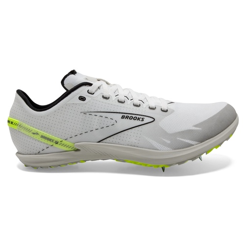 Built for fast, messy race days, the Brooks Draft XC is an ultralight cross-country spike that blends confident grip with just enough cushioning to stay sharp from the first surge to the final kick. A breathable, quick-draining mesh upper keeps things comfortable when the course turns wet, while the responsive BioMoGo DNA midsole smooths out uneven ground without feeling bulky. Finished with a customizable heel/upper area, the Draft XC is made to represent your team and leave your mark on the course.