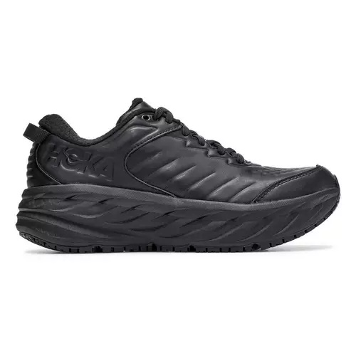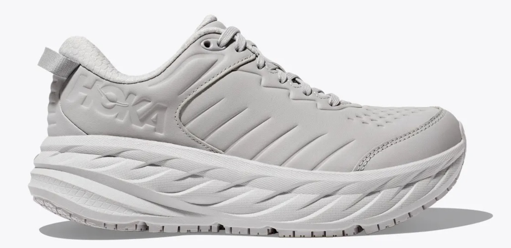 The Hoka Bondi SR takes the brand’s max-cushion Bondi feel and adapts it for long shifts, slick floors, and everyday wear. Built for nurses, hospitality workers, and anyone who spends hours on their feet, it pairs a plush EVA midsole with Hoka’s smooth-rolling rocker geometry to keep steps feeling easy late in the day. A water-resistant leather upper adds structure and wipe-clean practicality, while the slip-resistant outsole delivers confident traction when surfaces get wet.