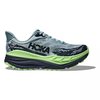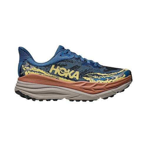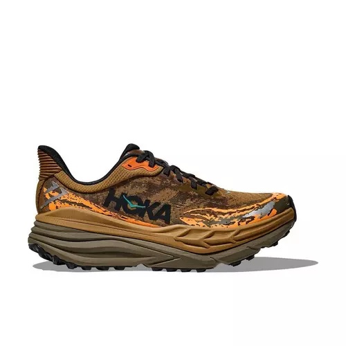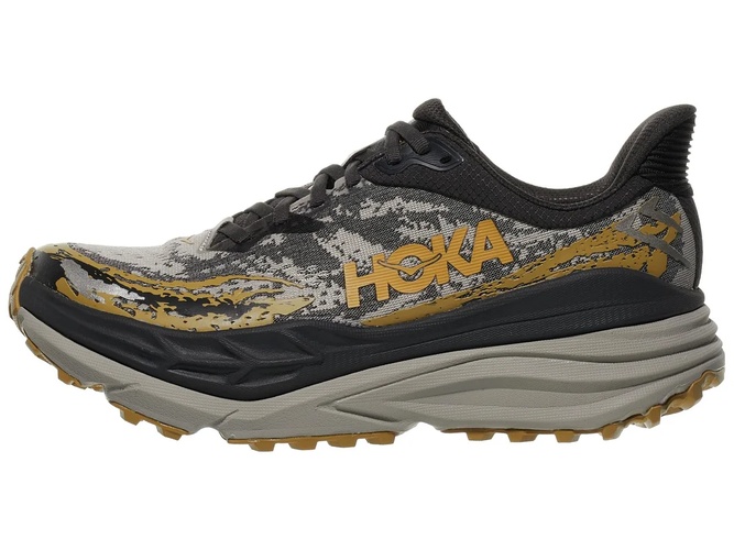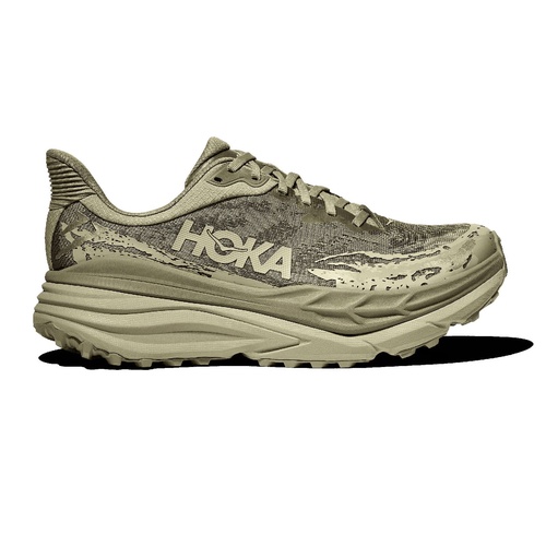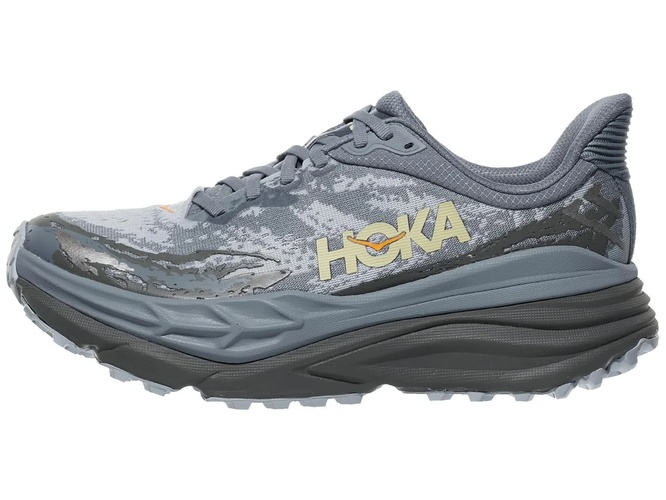 The Hoka Stinson 7 is a versatile trail running shoe designed to provide maximum cushioning and stability for long-distance runs on various terrains. This shoe features Hoka's new H-Frame technology, which offers a balanced, stable platform by incorporating a firmer foam wedge across the midsole. This innovation ensures that even with the high stack height, the shoe remains stable and prevents ankle rolling. The engineered mesh upper provides breathability and a snug fit, enhancing overall comfort and reducing the risk of irritation.