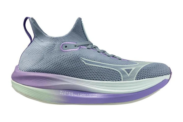 The Mizuno Neo Vista is a versatile daily trainer designed for runners seeking comfort, stability, and a smooth ride. The shoe features Mizuno’s ENERZY NXT midsole, providing a cushioned and responsive experience. A glass-fiber infused nylon plate enhances stability and propulsion without sacrificing flexibility, making it ideal for a variety of paces from easy recovery runs to faster tempo workouts. The one-piece knit upper offers a secure fit, though it may be snug for runners with high-volume feet. Overall, the Neo Vista is a well-rounded option for daily training.