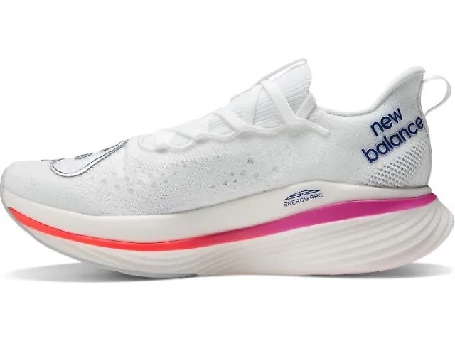 The New Balance FuelCell SuperComp Elite v3 is designed for peak performance, offering a highly cushioned, carbon-fiber-plated experience tailored for marathon racing. Featuring the innovative Energy Arc technology, this shoe combines a split midsole design with a carbon plate to deliver exceptional energy return and a smooth, stable ride. The FuelCell foam midsole provides a bouncy and responsive feel, making it ideal for various running paces and distances. The engineered knit upper is lightweight and breathable, offering a comfortable fit.