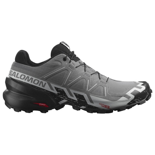 The Salomon Speedcross 6 continues the legacy of its predecessors, delivering top-notch performance for trail runners. This latest iteration features a redesigned upper for improved breathability and comfort, while retaining the robust protective elements Salomon is known for. The shoe's standout feature remains its aggressive Mud Contagrip outsole, providing exceptional traction on muddy and soft terrains. The 5mm lugs ensure superior grip, making it an ideal choice for technical trails and challenging conditions. Despite its rugged build, the Speedcross 6 maintains a relatively lightweight profile, enhancing agility without sacrificing durability.