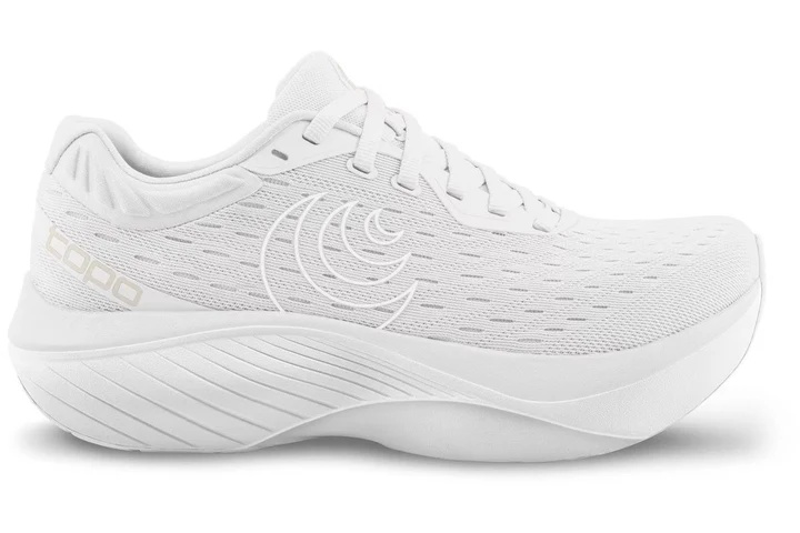 The Topo Atmos is a highly regarded running shoe that stands out for its comfortable fit and max cushioning, making it an excellent choice for easy runs and recovery sessions. Designed to accommodate wider feet, the Atmos features a spacious toe box and a secure lockdown provided by the heel support. The shoe combines a simple, recycled engineered mesh upper with a max cushion midsole made from Topo's ZipFoam formula, delivering a soft yet responsive ride. The thoughtful outsole design, with strategically placed rubber, ensures reliable traction on various surfaces.