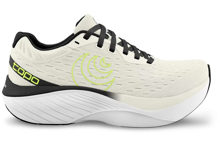 The Topo Atmos is a highly regarded running shoe that stands out for its comfortable fit and max cushioning, making it an excellent choice for easy runs and recovery sessions. Designed to accommodate wider feet, the Atmos features a spacious toe box and a secure lockdown provided by the heel support. The shoe combines a simple, recycled engineered mesh upper with a max cushion midsole made from Topo's ZipFoam formula, delivering a soft yet responsive ride. The thoughtful outsole design, with strategically placed rubber, ensures reliable traction on various surfaces.