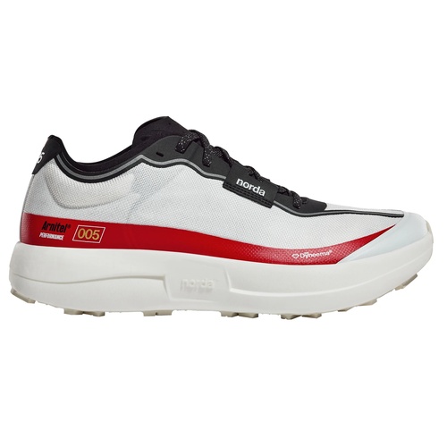 The Norda 005 is a purpose-built trail racing shoe designed to feel like a true “super shoe” once the terrain turns uneven. Instead of borrowing road-racing tricks, it leans on premium, trail-specific materials to deliver a fast, stable ride that still keeps you connected to the ground. With a lively Arnitel® midsole, a confidence-inspiring Vibram® Megagrip Elite outsole, and an ultra-tough Bio-Dyneema® upper that drains quickly, the 005 is made for hard efforts on technical courses and long race days alike.
