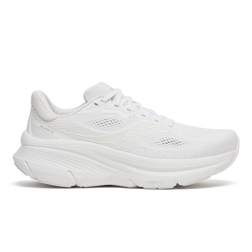 The Saucony Guide 19 is a max-cushioned stability trainer built for runners who want a steady, protected feel on everyday miles. Its PWRRUN midsole leans soft and forgiving, while Saucony’s CenterPath design keeps the ride guided and balanced without resorting to a stiff, old-school medial post. The result is a smooth, confidence-inspiring shoe for easy runs, long walks, and recovery days, with an accommodating upper and a durable outsole that’s ready for the daily grind.